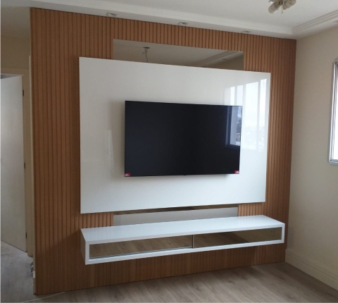 Os painéis ripados estão super em alta na decoração, e podem ser usados como revestimento em paredes, no teto ou em fachadas, além disso, podem
